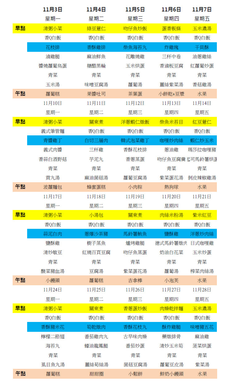 11月午餐/點心