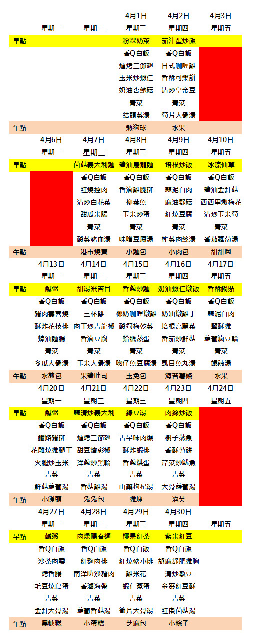 115/4月午餐/點心