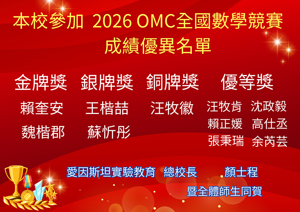 本校學生參加 「2026 OMC全國數學競賽」 成績優異~